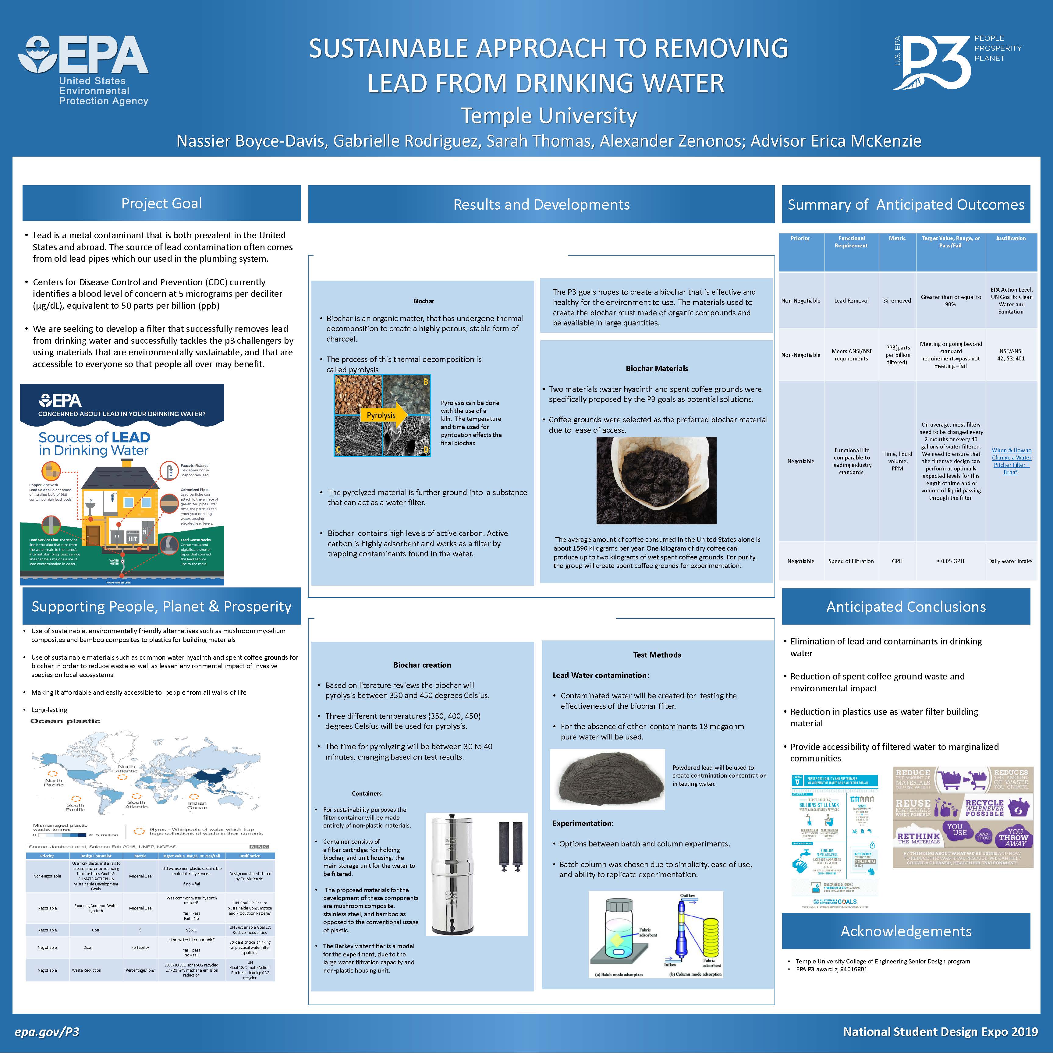2021 P3 Expo - Biochar Filter for Philadelphia Water Pb Removal