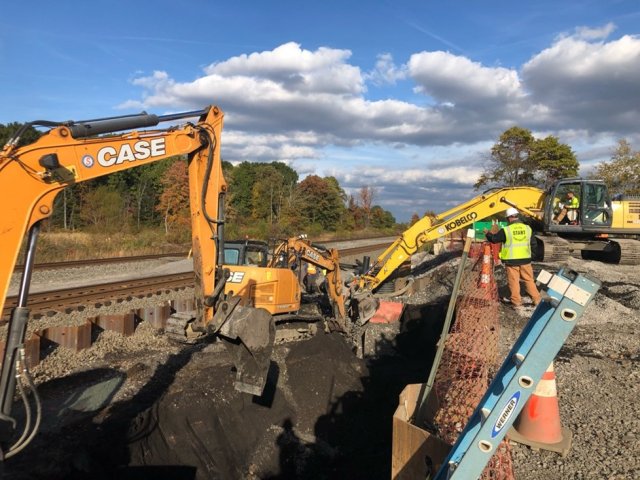 - On-site excavation work is complete and stockpiled contaminated soil is being removed from the staging areas. Confirmation soil sampling continues in areas at and near the derailment site.