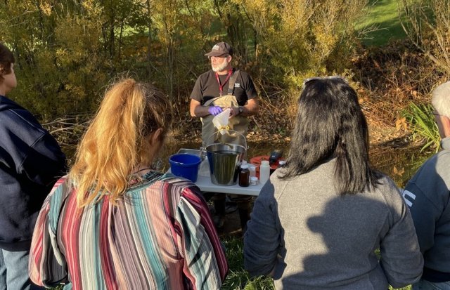 Ohio EPA Water Quality Supervisor Bill Zawiski hosted a two-part series of stream workshops with community members to share more details about Sulphur and Leslie Runs. These “Stream Ambassadors” spent an evening seeing a thorough demonstration of surface water and sediment sampling techniques and learning how that information informs scientists about stream health. The second session focused on biological and ecological sampling with demonstrations including electrofishing, kick net sampling for macroinvertebrates, and habitat evaluation using Ohio’s Qualitative Habitat Evaluation Index, or QHEI.