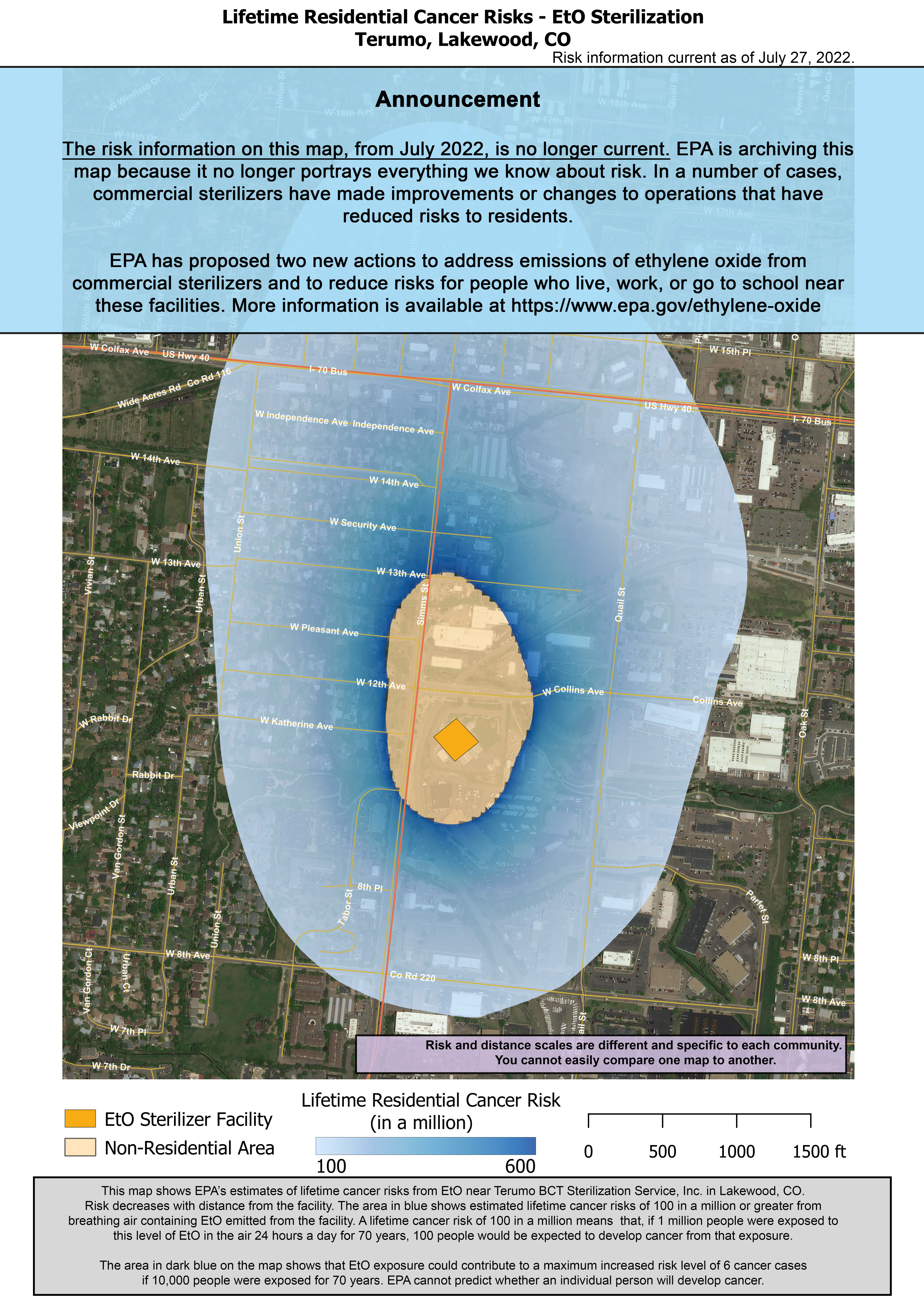 La EPA llevó a cabo una reunión comunitaria para los residentes del área de Lakewood el 22 de septiembre de 2022 para presentar los resultados del análisis de la modelización de riesgos del óxido de etileno de 2022 de la agencia para la instalación de Terumo BCT Sterilization Service. Esta modelización aporta nueva información y una resolución para las actividades previas realizadas por la compañía y los funcionarios de salud estatales en 2018 con el objetivo de evaluar y reducir el riesgo del óxido de etileno en el área aledaña a la instalación luego de la revisión de la EPA del cálculo de toxicidad para el óxido de etileno.