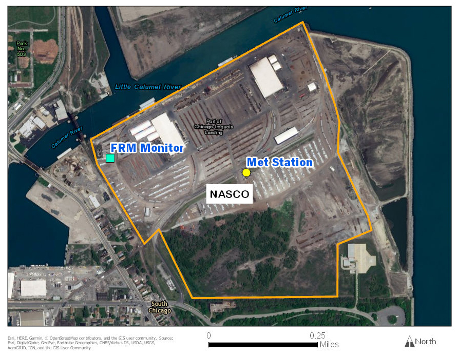 U.S. EPA has been studying the air quality in Chicago’s Southeast side since 2013 in response to residents’ concerns about the area’s long industrial history. North American Stevedoring Company, LLC (NASCO) is a bulk solid material handler located at 9301 South Kreiter Ave, Chicago, Illinois 60617. NASCO stores and handles, among other things, bulk solid materials, including manganese-bearing alloys.  U.S. EPA has inspected NASCO several times since October 2017.