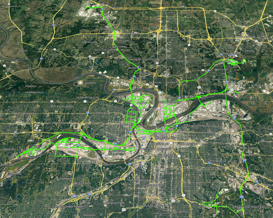GMAP route in Kansas City, Kansas, and Kansas City, Missouri, April 22-25, 2024. (U.S. EPA image)