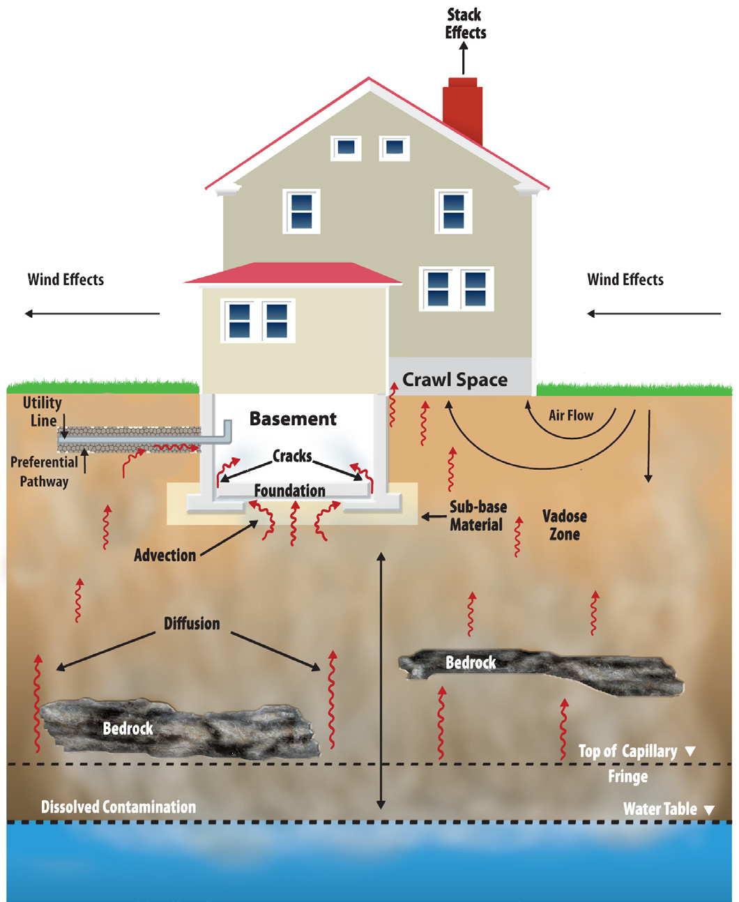 Vapor intrusion is a way that volatile chemicals in soil and groundwater can enter and accumulate inside buildings. Volatile chemicals are a class of chemicals that tend to evaporate easily into the air. Normally, if these chemicals evaporate into outdoor air, they dissipate and do not pose health risks. Vapor mitigation systems that remove these vapors from home interiors can be a reliable and effective way to keep such vapors from accumulating, so that they do not pose health risks.