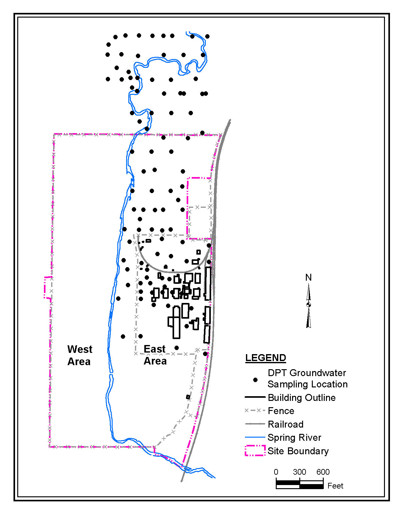 The results of the DPT groundwater sampling indicate that the plume of 1,4-dioxane is migrating generally to the north in the direction of the groundwater flow and migrates down into the upper bedrock aquifer as it moves away from the facility. In addition to the groundwater samples, soil samples and geophysical techniques are being used to characterize contaminants in potential source areas and assess the properties of the aquifers. The East Area groundwater investigations will continue until the extent of contamination is determined and potential source areas have been identified.