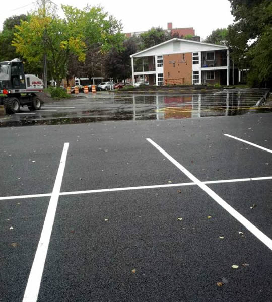 The parking lot after 2 layers of pavement have been poured, spread and rolled.