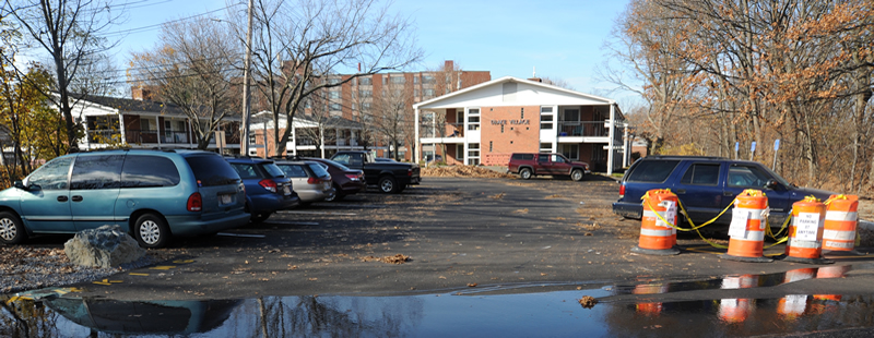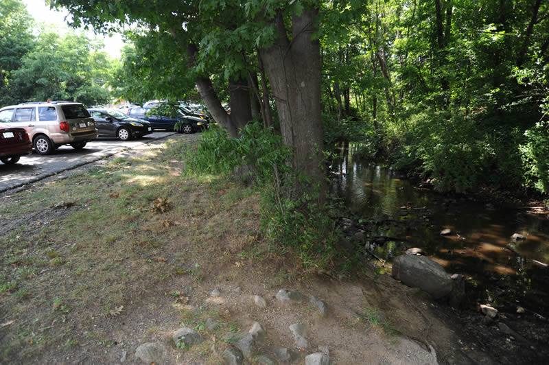 Northern side of parking lot, adjacent to Mill Brook