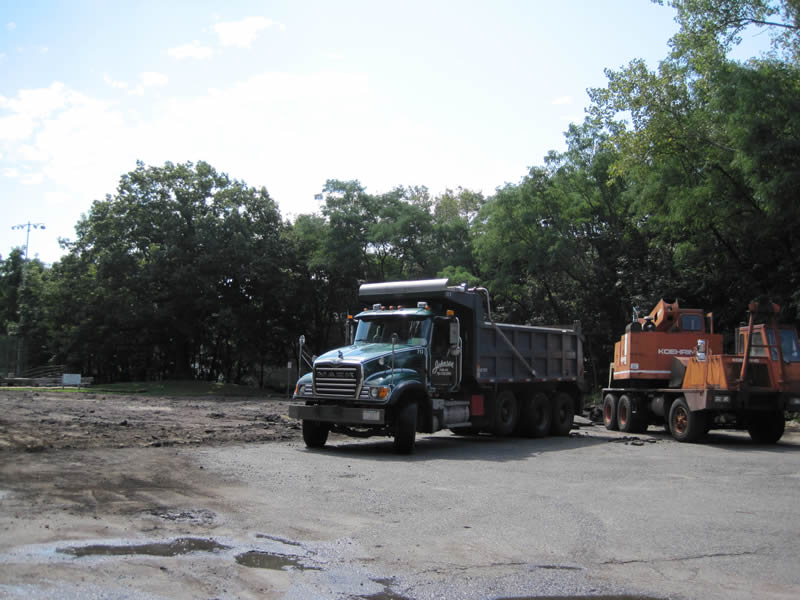 Existing asphalt being removed from the parking lot.