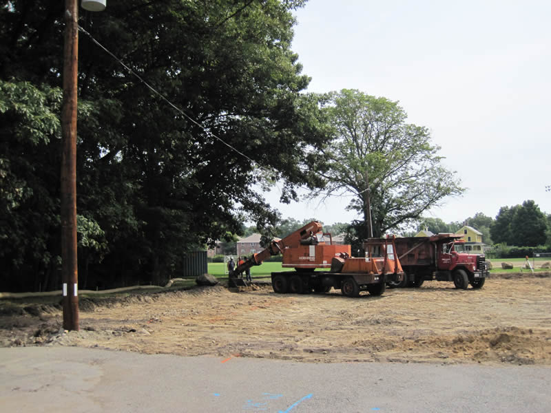 Construction crew digs one of two infiltration trenches.