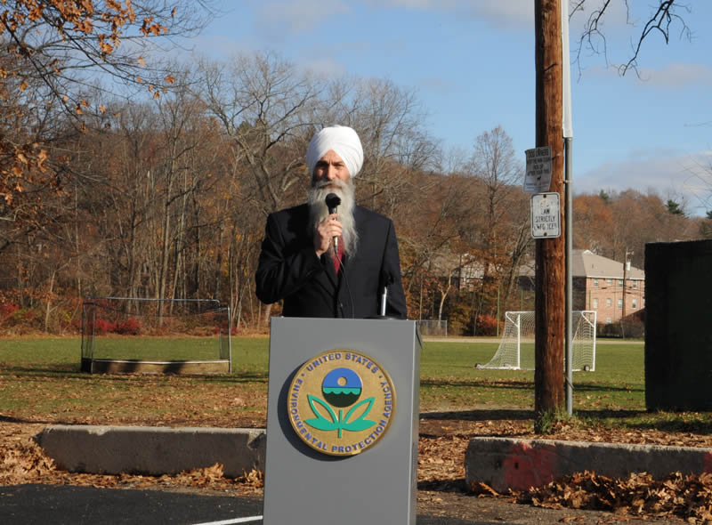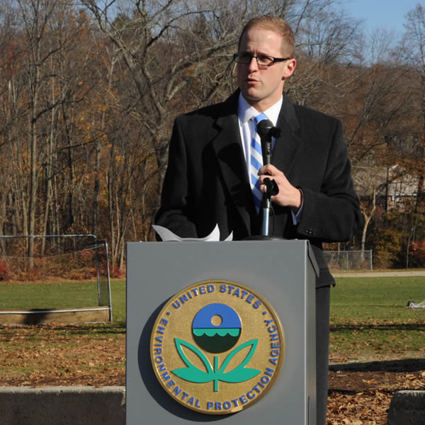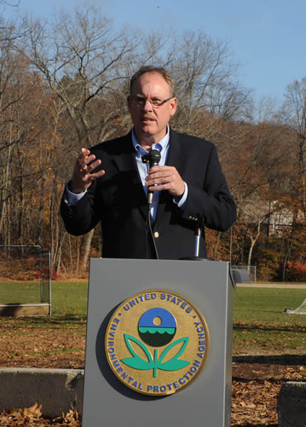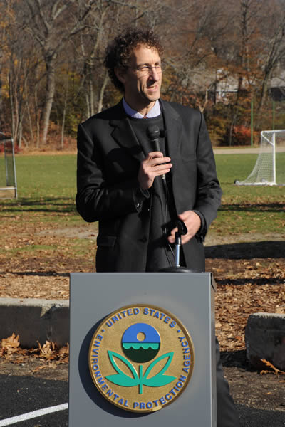 EPA's Ken Moraff, emcee, greets the crowd and shares some personal stories about porous pavement and this parking lot.