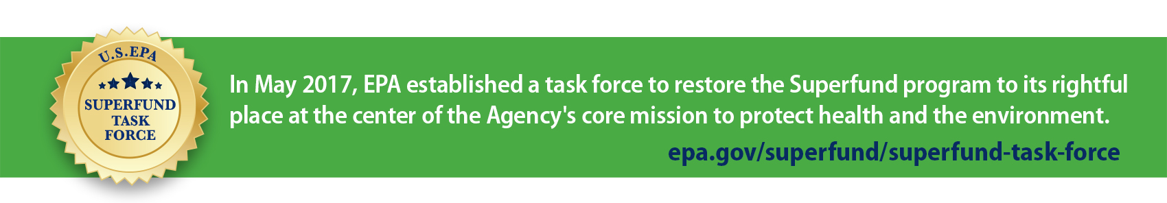The Superfund program is a top priority for EPA and the agency is making strides in accelerating sites through remediation and back to productive use by implementing the Superfund Task Force Recommendations. For more information about EPA’s Superfund Task Force: