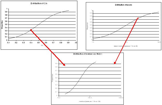 A mean and a CV are randomly selected from their respective distributions (top two graphs based on Table 3) to derive distributions of residues on different fields (see Figure 3)Figure B.3