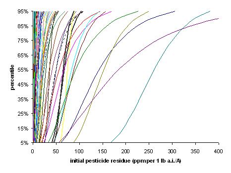 Initial pesticide residue data are only available for insecticides since the insecticides that were tested indicated greater acute risks to birds and mammals that consume arthropods than herbicides or fungicides. Therefore, analyses of initial insecticide residues were studied in order to quantify exposures to birds and mammals. It is assumed that the initial pesticide residue data set for arthropods obtained from insecticides is applicable to all classes of pesticides sprayed on fields. It is also assumed that initial residue levels are primarily influenced by application rate and the characteristics of the arthropod or plant material on which the pesticide is deposited. Longer-term concentrations, however, are likely influenced by a myriad of factors including the characteristics of the individual chemical, plant, and arthropod.
