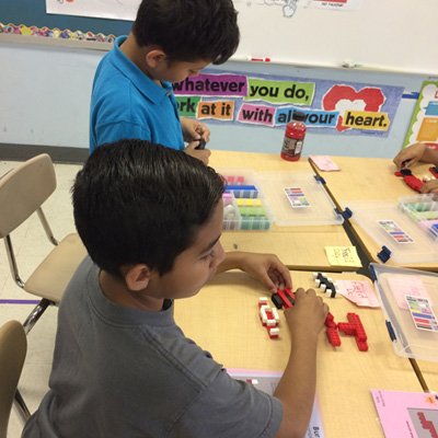 Students use legos to model combustion of fossil fuels, showing how air pollution is created and climate is impacted.