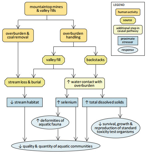 As noted in EPA's 2011 report The Effects of Mountaintop Mines and Valley Fills on Aquatic Ecosystems of the Central Appalachian Coalfields, mountaintop mines and valley fills lead directly to five principal alterations of stream ecosystems: