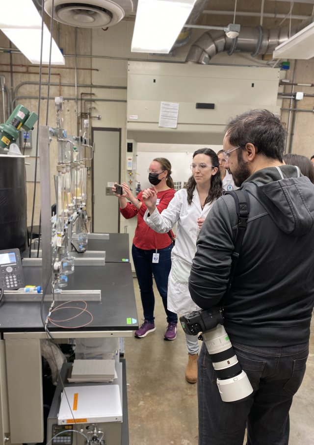 Reporters saw EPA scientists preparing samples of water, which were then filtered through ion exchange resin. EPA researchers discussed the current methods of filtering PFAS from drinking water, as well as their ongoing research to find thorough and cost-effective filtration methods for both small and large drinking water systems.