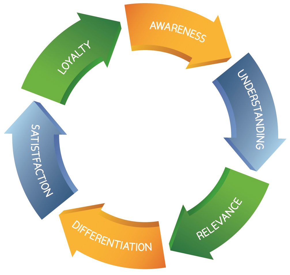 On this continuum, awareness is a necessary first step before behavior changes should be addressed. If people are not aware of an issue, they are unlikely to engage with specific behavior change messages. Once they are aware and have a level of understanding, then we need to create personal relevance by helping them learn that they have potential to reduce the environmental impact of their food waste by composting it. After this understanding is established, specific behavior changes (differentiation) can be promoted. The campaigns can help spur initial behavior change where the audience tries behaviors for the first time. Hopefully, that person has a good experience (satisfaction), leading them to form a habit. Eventually, as more people practice composting behaviors, the campaigns can build loyalty and trust with audiences acting as advocates for the behaviors and influencing each other to create social norms.