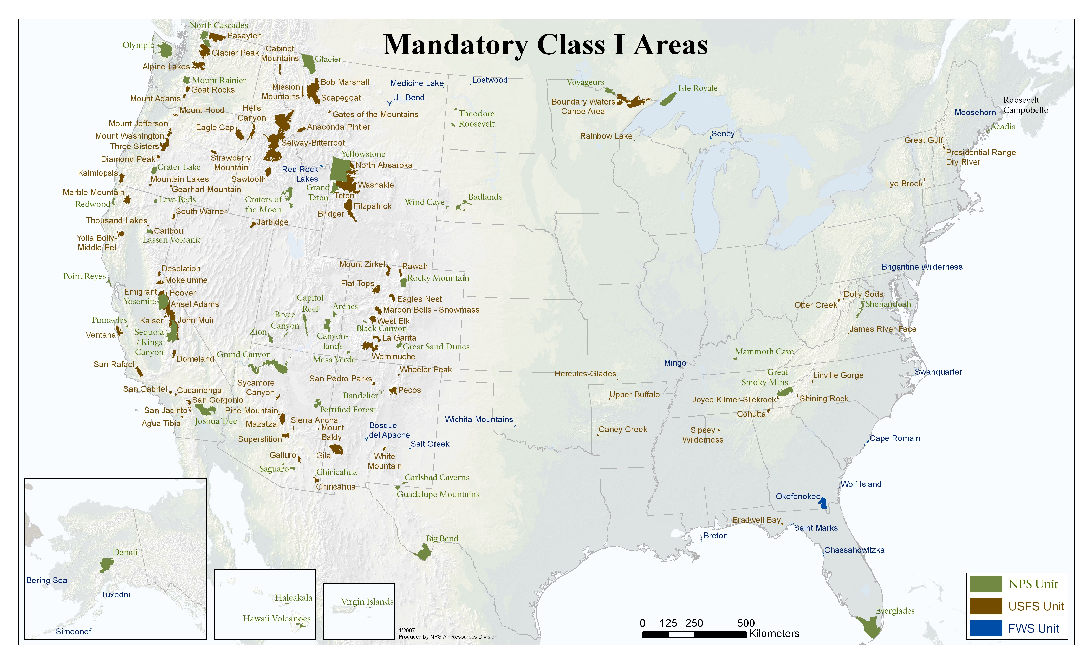 - List of 156 National Parks and Wilderness Areas (Class I Areas) Protected Under the Regional Haze Program.